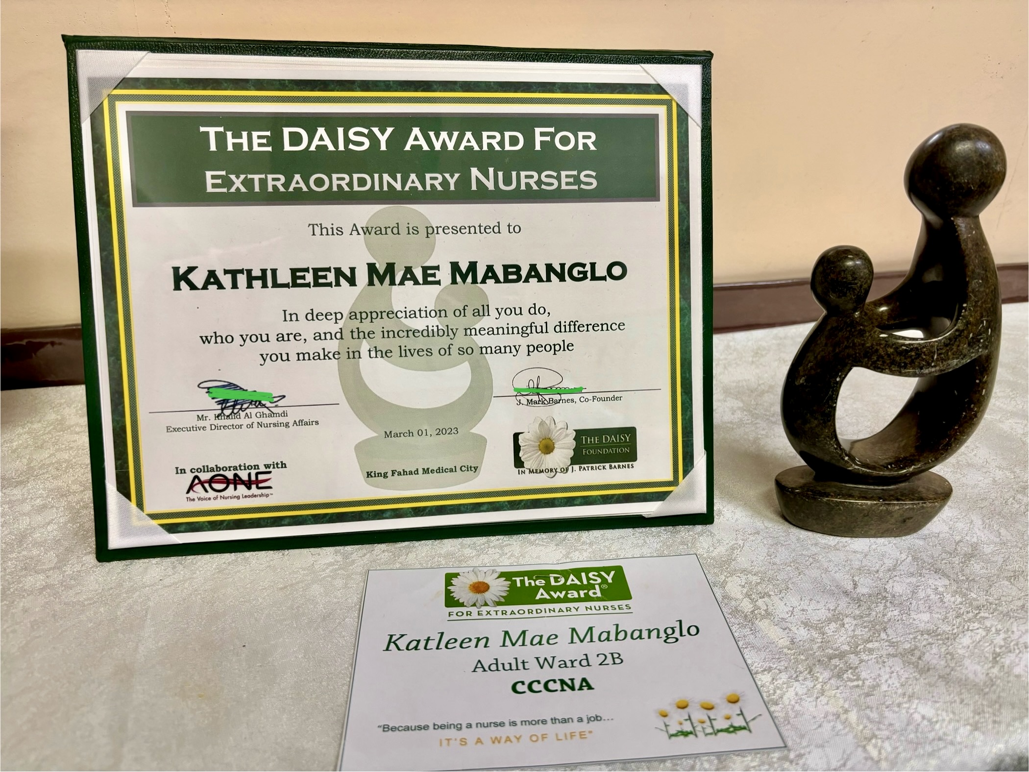 Nurse Kathleen Mae Mabanglo, Daisy Awardee!