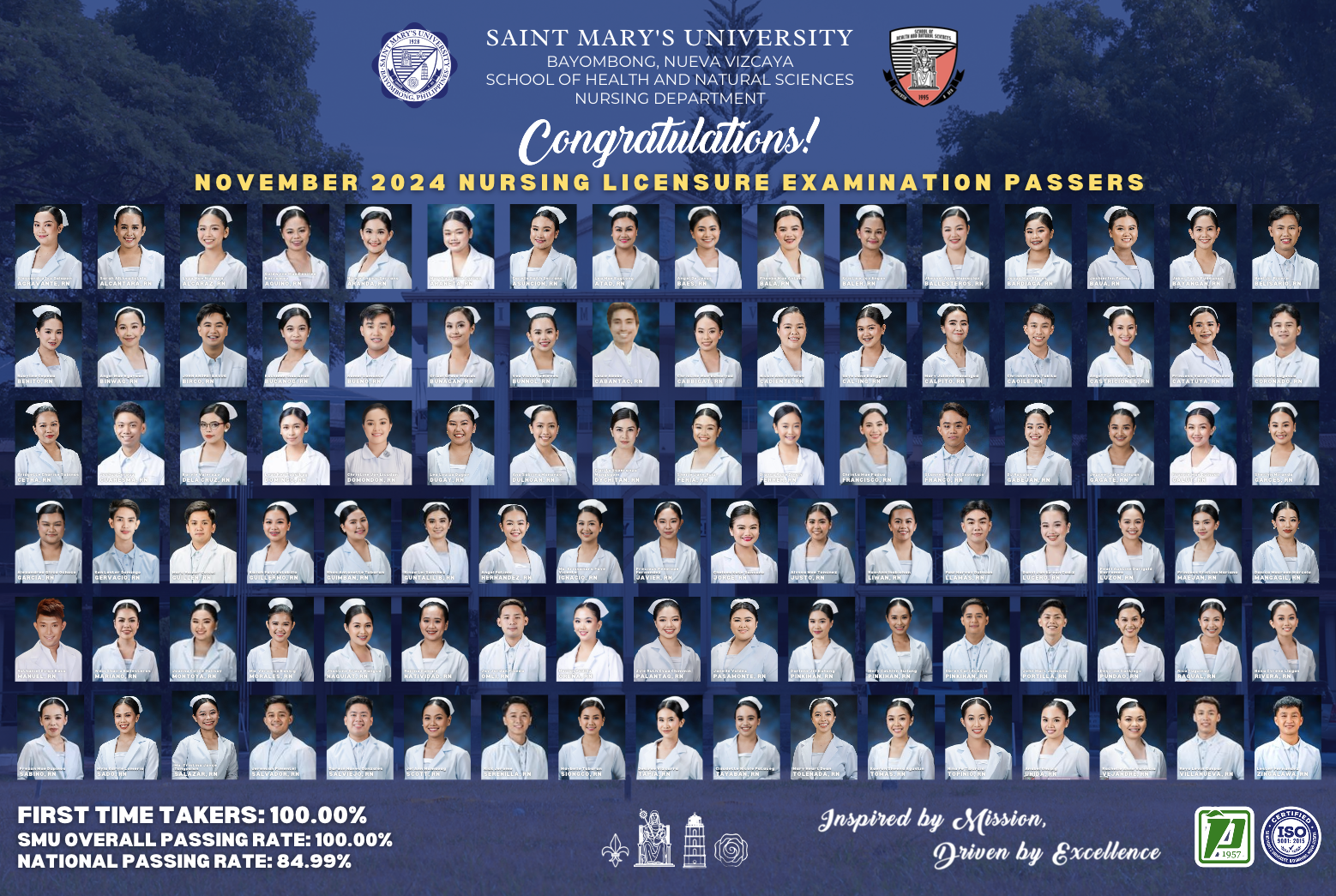 Ninety-nine BS Nursing graduates of Saint Mary’s University (SMU) passed the November 2024 Philippine Nurse Licensure Examination.