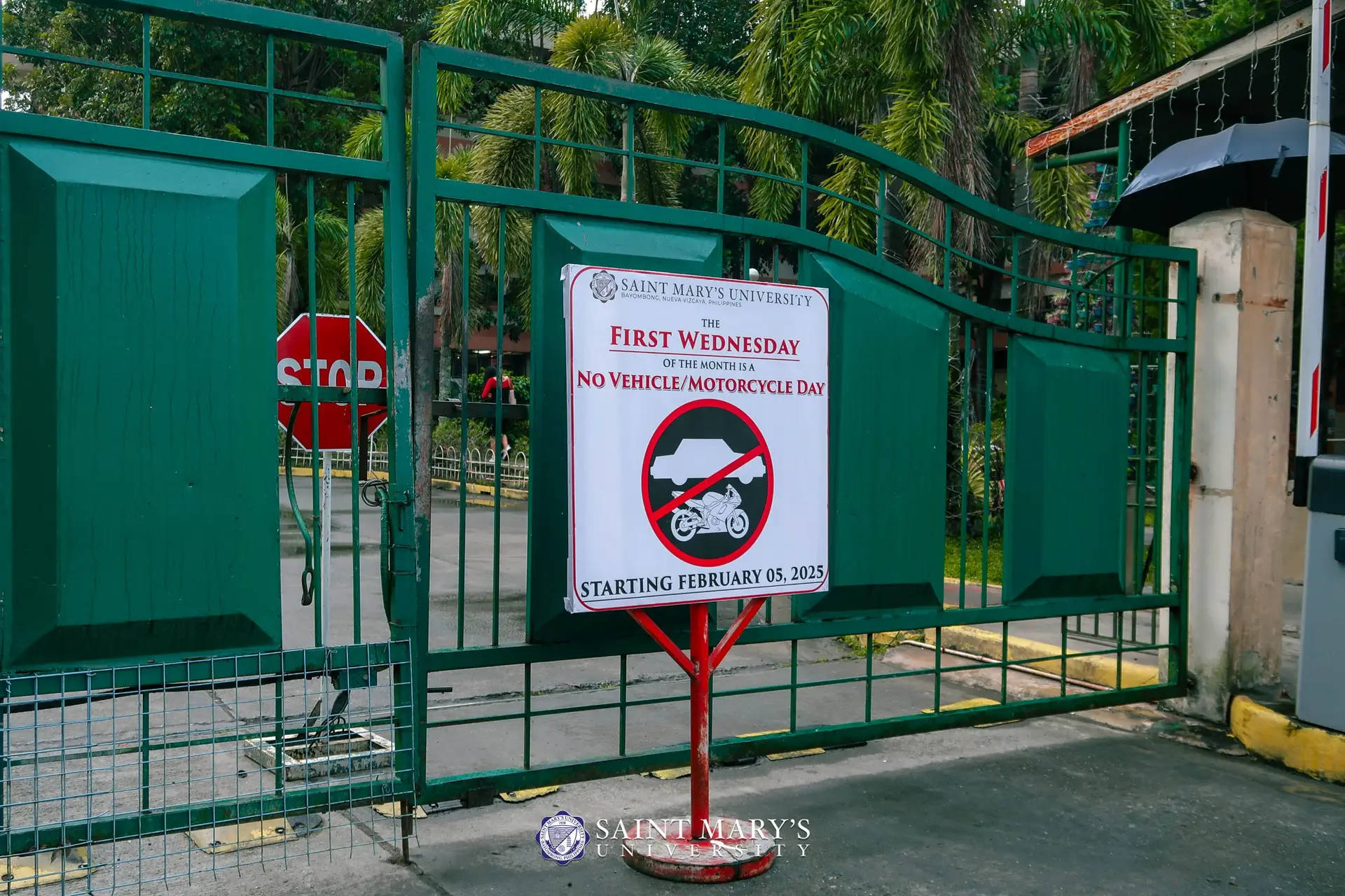 On February 5, 2025, Saint Mary’s University successfully implemented its first “No Vehicle/No Motorcycle Day,” an initiative aimed at reducing carbon emissions and promoting sustainable practices. The policy restricted the entry of vehicles and motorcycles into key campus areas, including the Grade School, Junior High School, College Campus, and dormitories, from 1:00 AM to 10:00 PM.