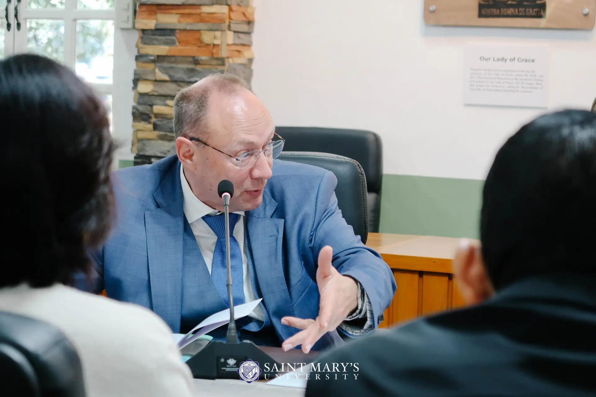 The partnership meeting, led by the Department of Nursing of the School of Health and Natural Sciences, started with a performance by the SMU Chorale and a welcome message from SMU President Dr. John Octavious Palina. The event brought together top SMU officials and representatives from vzw Chinta of Belgium, underscoring their shared commitment to advancing healthcare needs and opportunities for internationalization in nursing education.